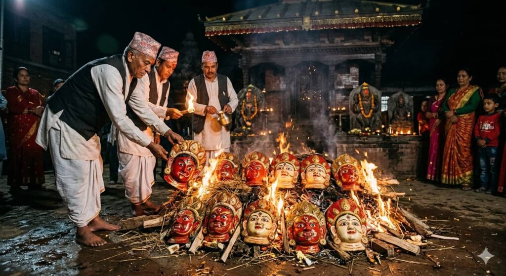 नेपालको ऐतिहासिक एवं सांस्कृतिक सहर भक्तपुरमा ‘भलभल अष्टमी’ लाई नवदुर्गा गणको देहावसान हुने अर्थात् अन्त्येष्टिको दिनका रूपमा विशेष महत्वका साथ मनाइन्छ। यस दिन आठ महिनासम्म नगरका विभिन्न टोल तथा उपत्यकाका अन्य स्थानमा नाच प्रदर्शन गर्ने नवदुर्गा देवगणको विसर्जन गरिन्छ। धार्मिक विश्वास अनुसार, भलभल अष्टमीको रातमा नवदुर्गाले प्रयोग गर्ने मुकुटहरूलाई तान्त्रिक विधिपूर्वक ब्रह्मायणी पीठको परिसरमा जलाएर अन्त्येष्टि गरिन्छ। यसरी मुकुट जलाउनुलाई देवगणको भौतिक शरीर त्याग गरी मोक्ष प्राप्त गरेको मानिन्छ र सोही दिनदेखि नवदुर्गा द्योंछें (देवता घर) मा नियमित पूजाआजा समेत बन्द हुने गर्दछ।